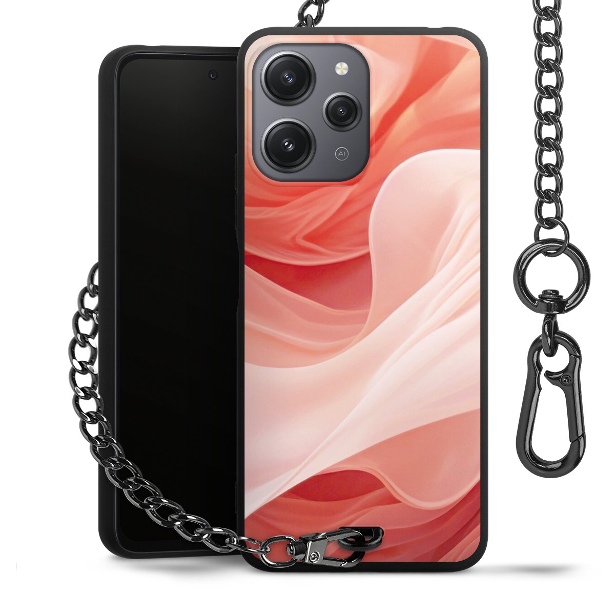 • Mattschwarze Handyhülle mit Metallkette
