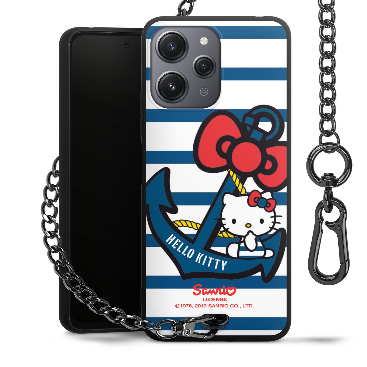 Die mattschwarze Silikon-Handyhülle besteht aus robustem TPU (thermoplastisches Polyurethan). Sie ist flexibel und schützt Dein Smartphone vor Stößen und Kratzern. Die Kette sowie der Karabinerhaken sind aus Metall in Gunmetal-Optik gefertigt. Für dieses Produkt kommen ausschließlich TÜV-geprüfte Materialien zum Einsatz.