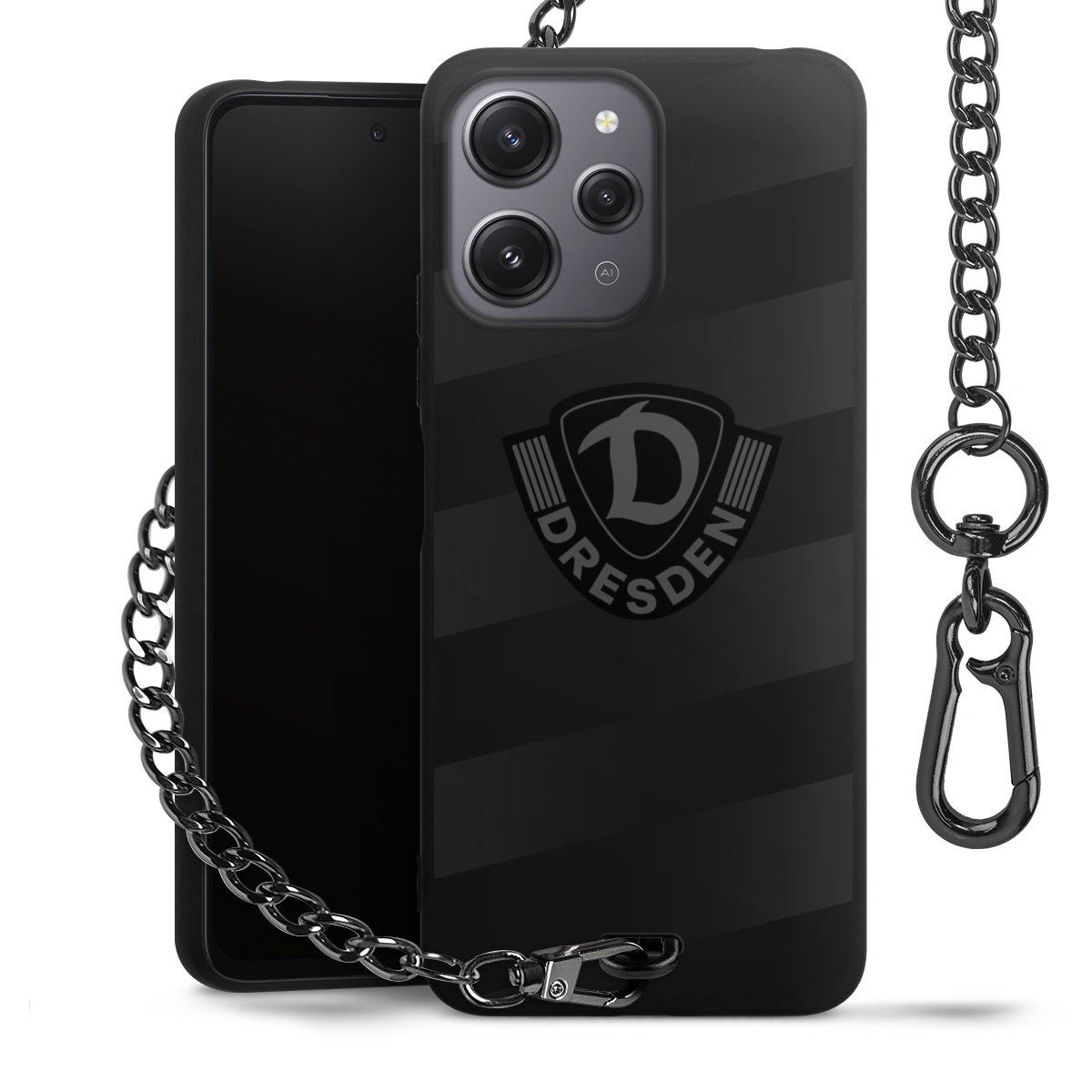 Die mattschwarze Silikon-Handyhülle besteht aus robustem TPU (thermoplastisches Polyurethan). Sie ist flexibel und schützt Dein Smartphone vor Stößen und Kratzern. Die Kette sowie der Karabinerhaken sind aus Metall in Gunmetal-Optik gefertigt. Für dieses Produkt kommen ausschließlich TÜV-geprüfte Materialien zum Einsatz.