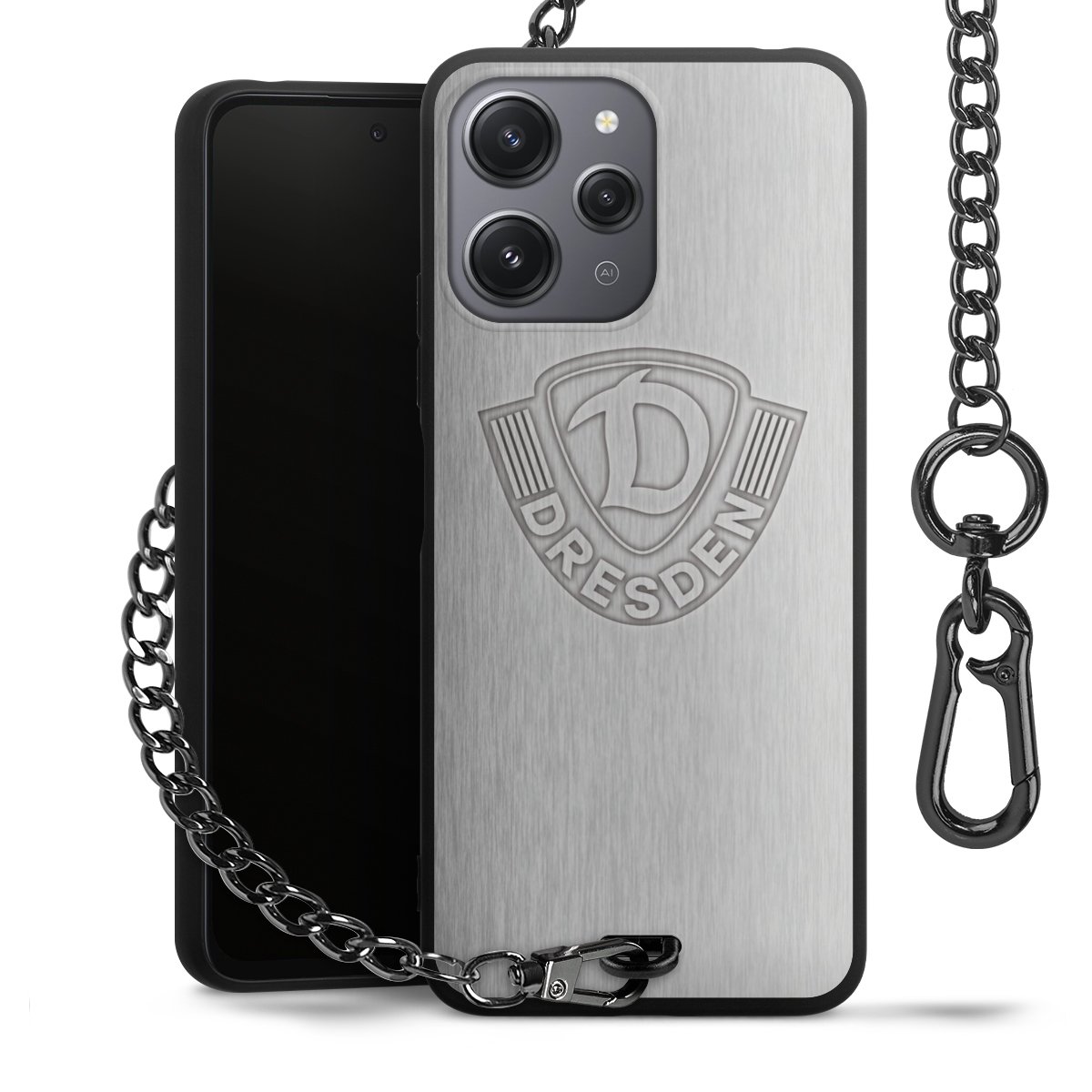Die mattschwarze Silikon-Handyhülle besteht aus robustem TPU (thermoplastisches Polyurethan). Sie ist flexibel und schützt Dein Smartphone vor Stößen und Kratzern. Die Kette sowie der Karabinerhaken sind aus Metall in Gunmetal-Optik gefertigt. Für dieses Produkt kommen ausschließlich TÜV-geprüfte Materialien zum Einsatz.