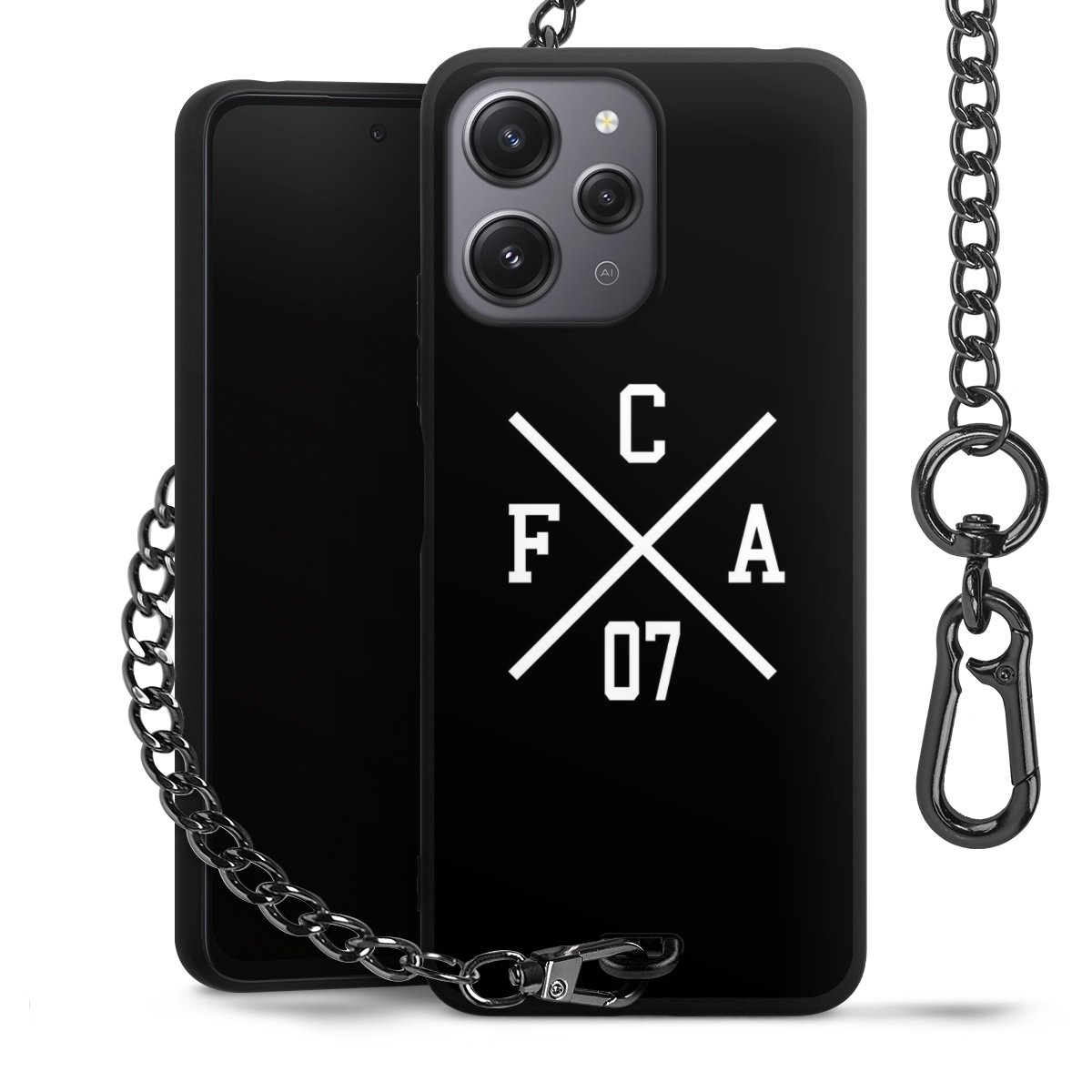 • Mattschwarze Handyhülle mit Metallkette