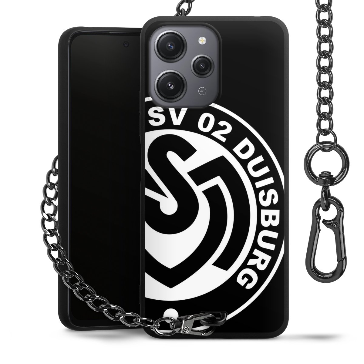 Die mattschwarze Silikon-Handyhülle besteht aus robustem TPU (thermoplastisches Polyurethan). Sie ist flexibel und schützt Dein Smartphone vor Stößen und Kratzern. Die Kette sowie der Karabinerhaken sind aus Metall in Gunmetal-Optik gefertigt. Für dieses Produkt kommen ausschließlich TÜV-geprüfte Materialien zum Einsatz.
