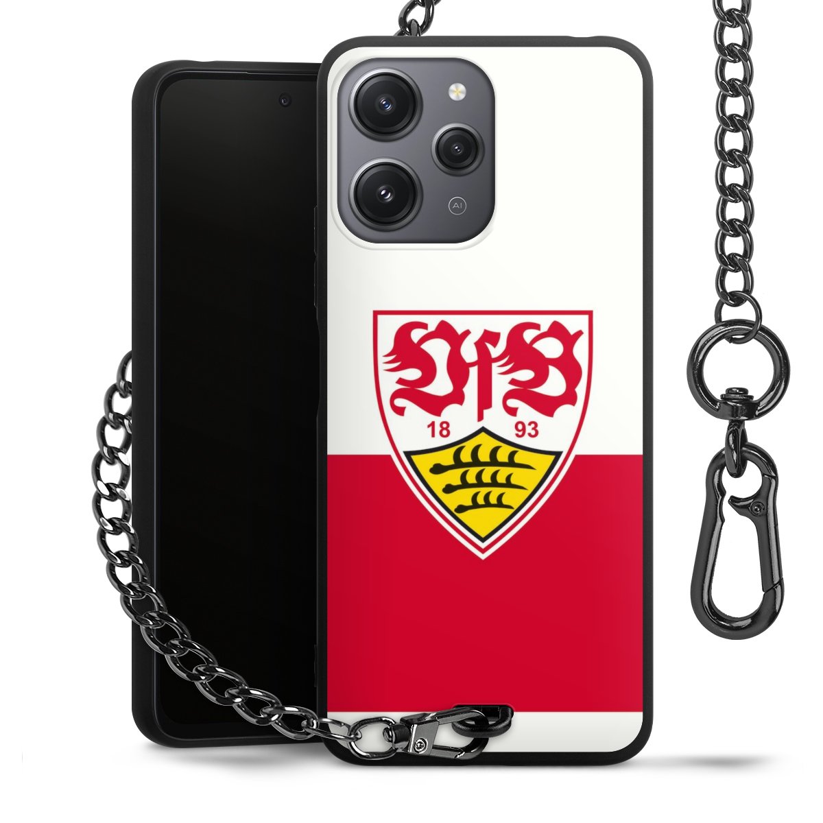 Die mattschwarze Silikon-Handyhülle besteht aus robustem TPU (thermoplastisches Polyurethan). Sie ist flexibel und schützt Dein Smartphone vor Stößen und Kratzern. Die Kette sowie der Karabinerhaken sind aus Metall in Gunmetal-Optik gefertigt. Für dieses Produkt kommen ausschließlich TÜV-geprüfte Materialien zum Einsatz.