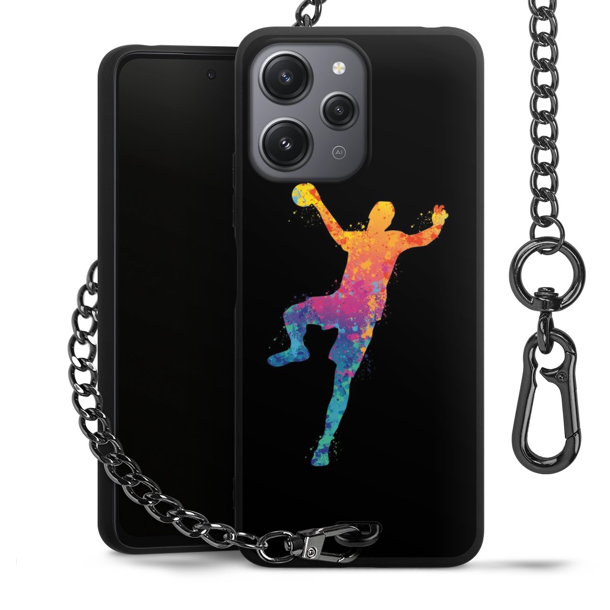 - Mattschwarze Handyhülle mit Metallkette