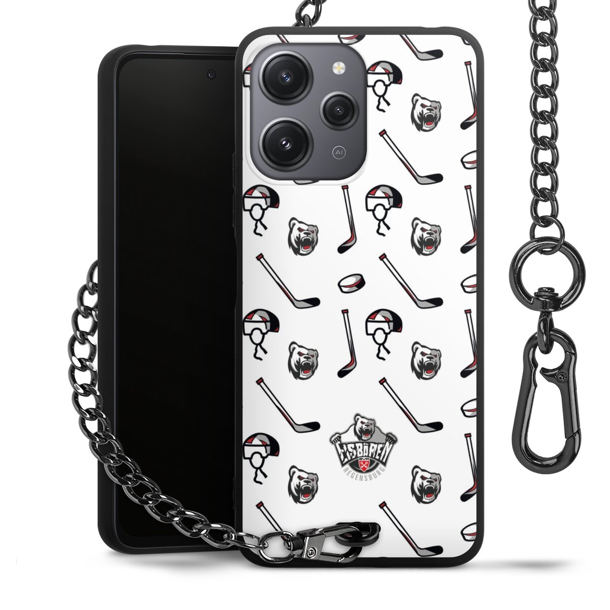 Die mattschwarze Silikon-Handyhülle besteht aus robustem TPU (thermoplastisches Polyurethan). Sie ist flexibel und schützt Dein Smartphone vor Stößen und Kratzern. Die Kette sowie der Karabinerhaken sind aus Metall in Gunmetal-Optik gefertigt. Für dieses Produkt kommen ausschließlich TÜV-geprüfte Materialien zum Einsatz.