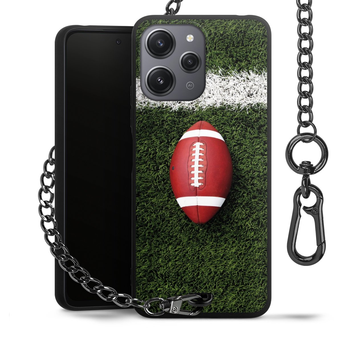 - Mattschwarze Handyhülle mit Metallkette