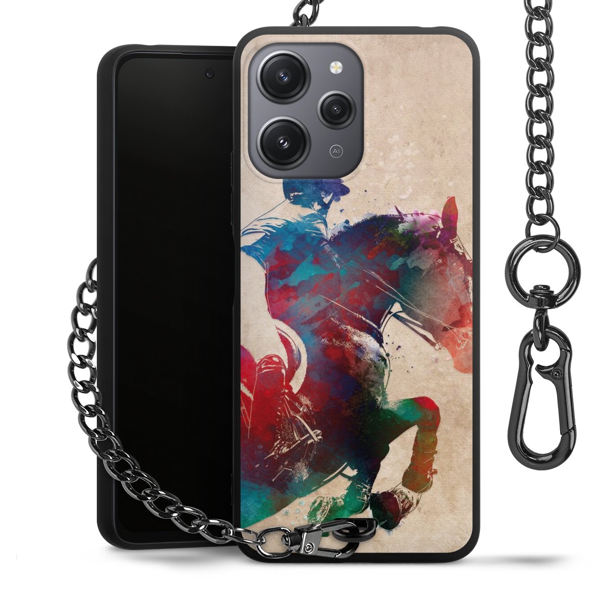 • Mattschwarze Handyhülle mit Metallkette
