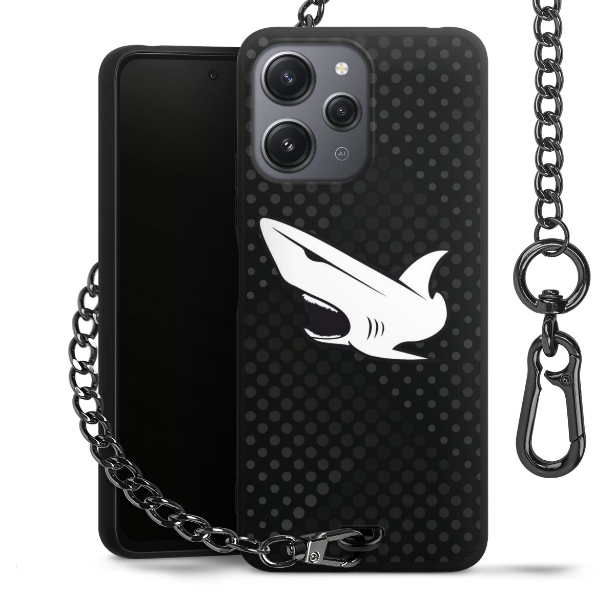 Die mattschwarze Silikon-Handyhülle besteht aus robustem TPU (thermoplastisches Polyurethan). Sie ist flexibel und schützt Dein Smartphone vor Stößen und Kratzern. Die Kette sowie der Karabinerhaken sind aus Metall in Gunmetal-Optik gefertigt. Für dieses Produkt kommen ausschließlich TÜV-geprüfte Materialien zum Einsatz.