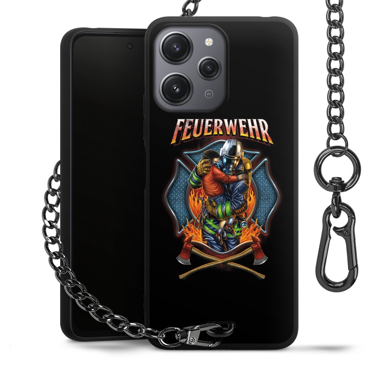 • Mattschwarze Handyhülle mit Metallkette