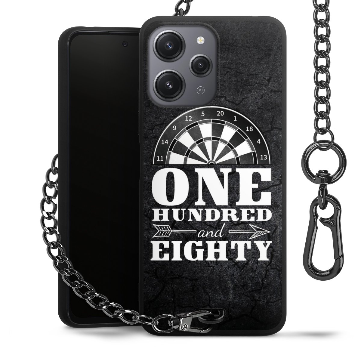 - Mattschwarze Handyhülle mit Metallkette