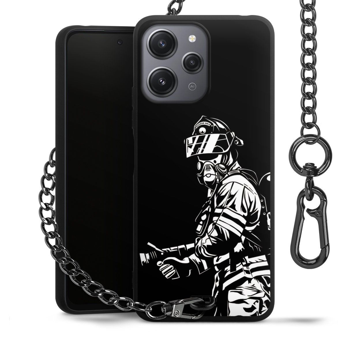 Die mattschwarze Silikon-Handyhülle besteht aus robustem TPU (thermoplastisches Polyurethan). Sie ist flexibel und schützt Dein Smartphone vor Stößen und Kratzern. Die Kette sowie der Karabinerhaken sind aus Metall in Gunmetal-Optik gefertigt. Für dieses Produkt kommen ausschließlich TÜV-geprüfte Materialien zum Einsatz.