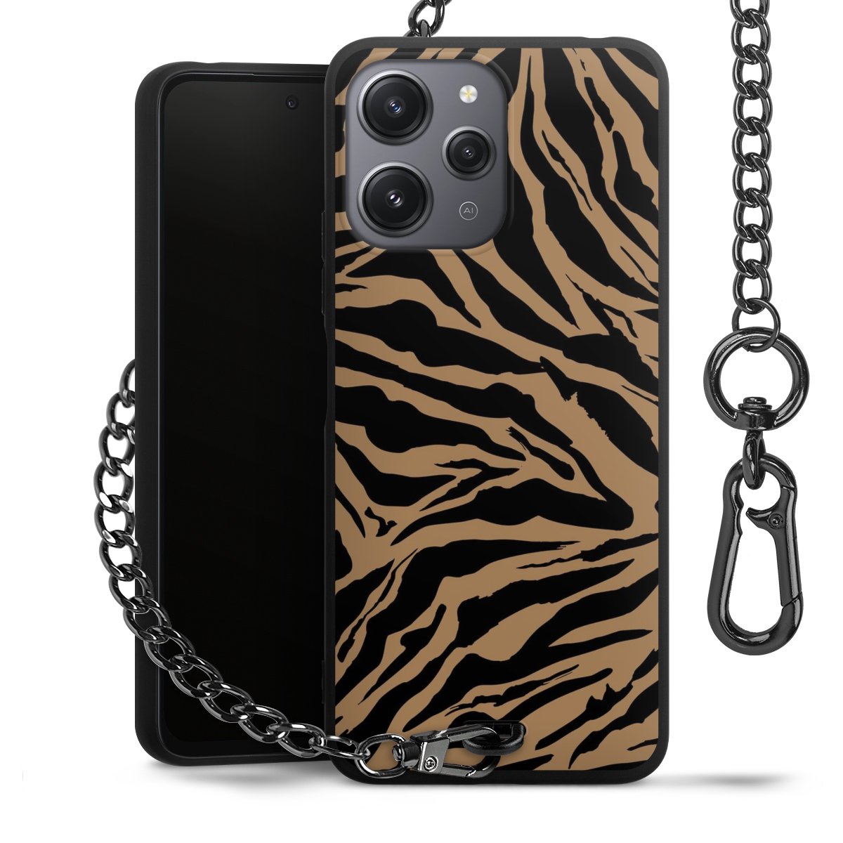 - Mattschwarze Handyhülle mit Metallkette