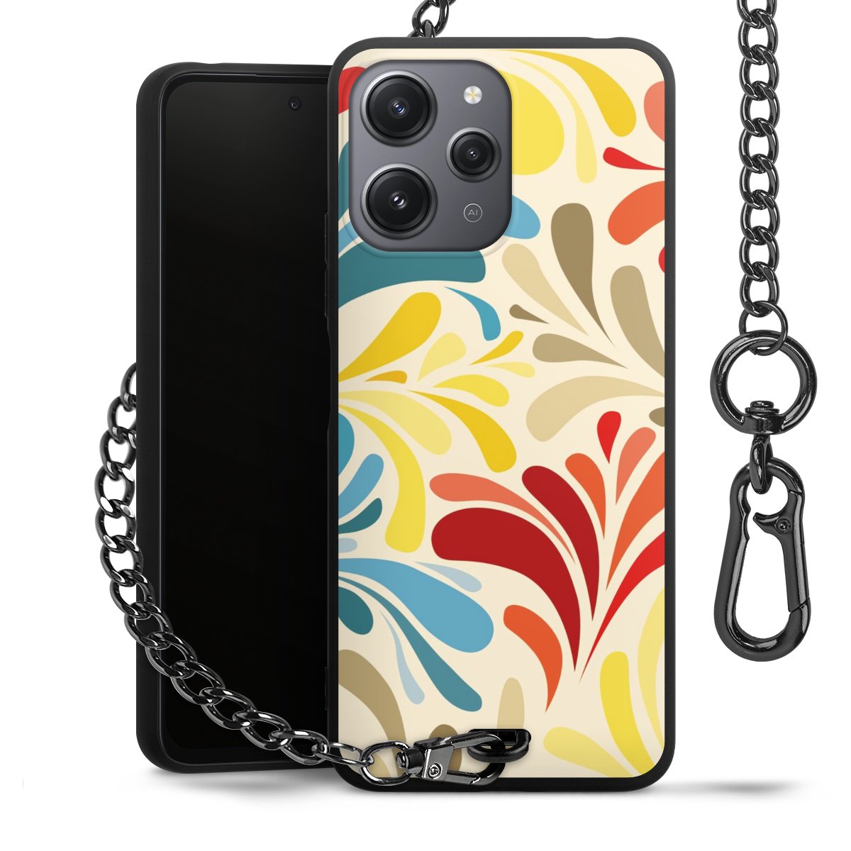 - Mattschwarze Handyhülle mit Metallkette