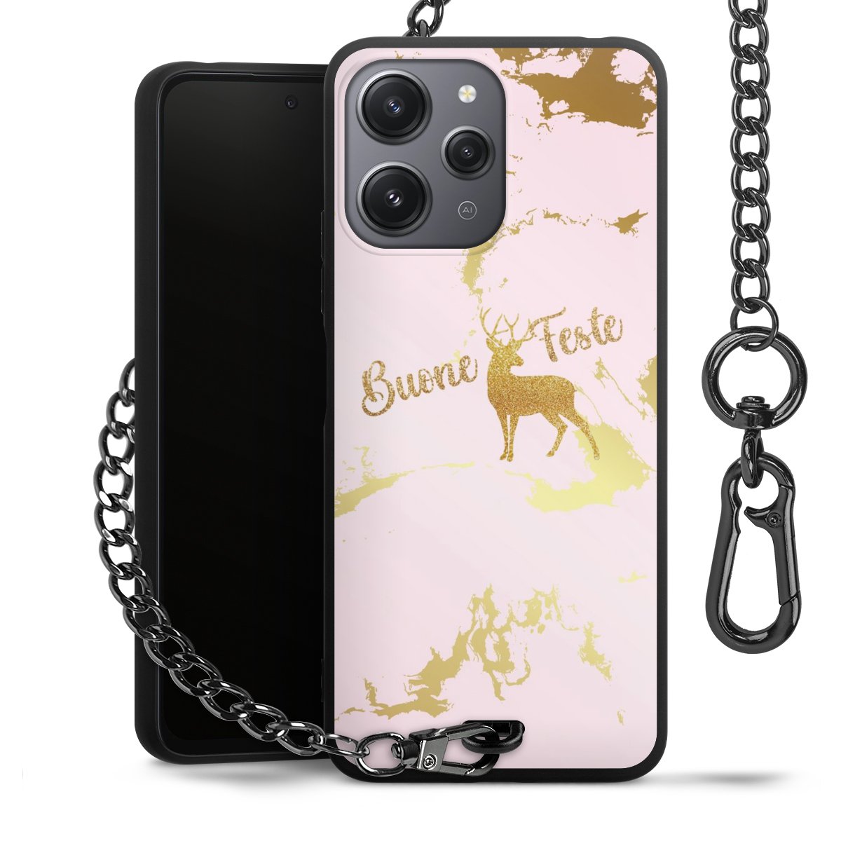 • Mattschwarze Handyhülle mit Metallkette
