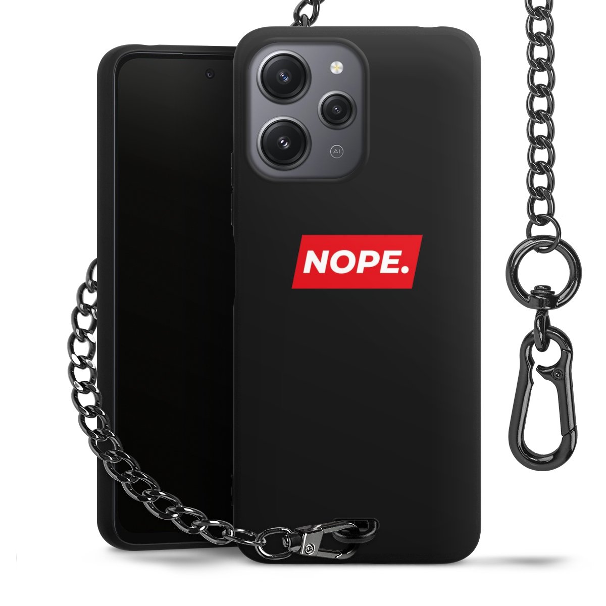 Die mattschwarze Silikon-Handyhülle besteht aus robustem TPU (thermoplastisches Polyurethan). Sie ist flexibel und schützt Dein Smartphone vor Stößen und Kratzern. Die Kette sowie der Karabinerhaken sind aus Metall in Gunmetal-Optik gefertigt. Für dieses Produkt kommen ausschließlich TÜV-geprüfte Materialien zum Einsatz.