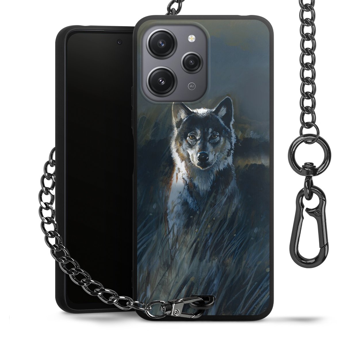 • Mattschwarze Handyhülle mit Metallkette