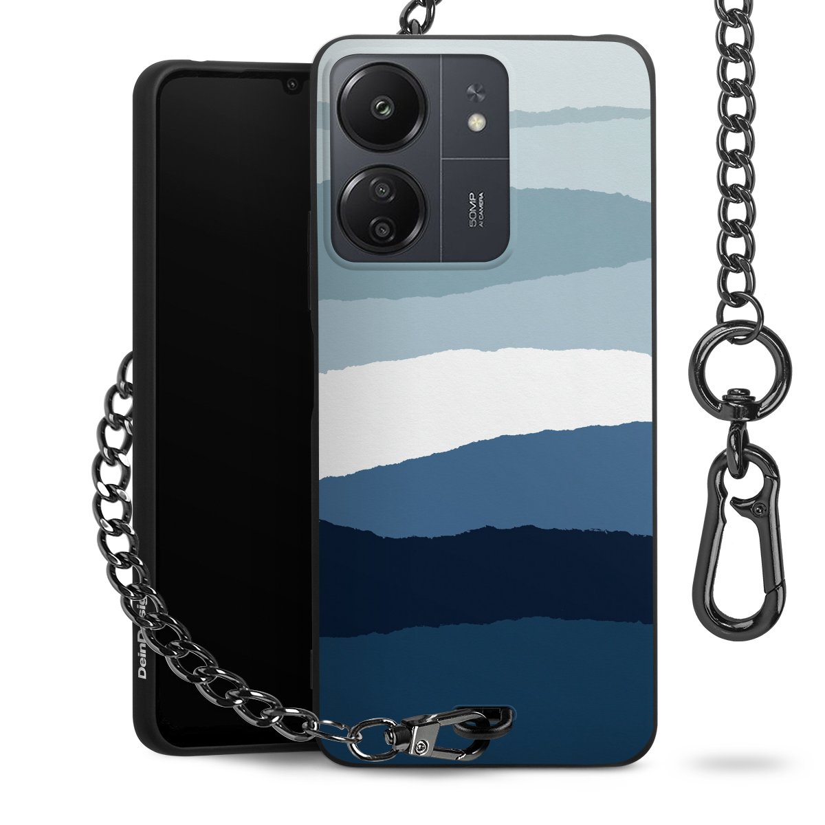 Die mattschwarze Silikon-Handyhülle besteht aus robustem TPU (thermoplastisches Polyurethan). Sie ist flexibel und schützt Dein Smartphone vor Stößen und Kratzern. Die Kette sowie der Karabinerhaken sind aus Metall in Gunmetal-Optik gefertigt. Für dieses Produkt kommen ausschließlich TÜV-geprüfte Materialien zum Einsatz.