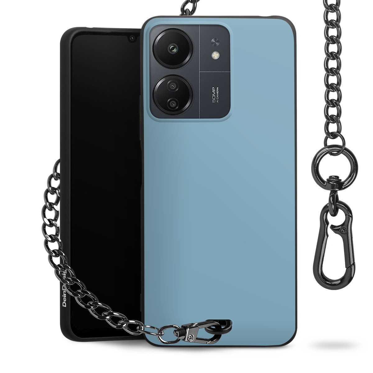 Die mattschwarze Silikon-Handyhülle besteht aus robustem TPU (thermoplastisches Polyurethan). Sie ist flexibel und schützt Dein Smartphone vor Stößen und Kratzern. Die Kette sowie der Karabinerhaken sind aus Metall in Gunmetal-Optik gefertigt. Für dieses Produkt kommen ausschließlich TÜV-geprüfte Materialien zum Einsatz.