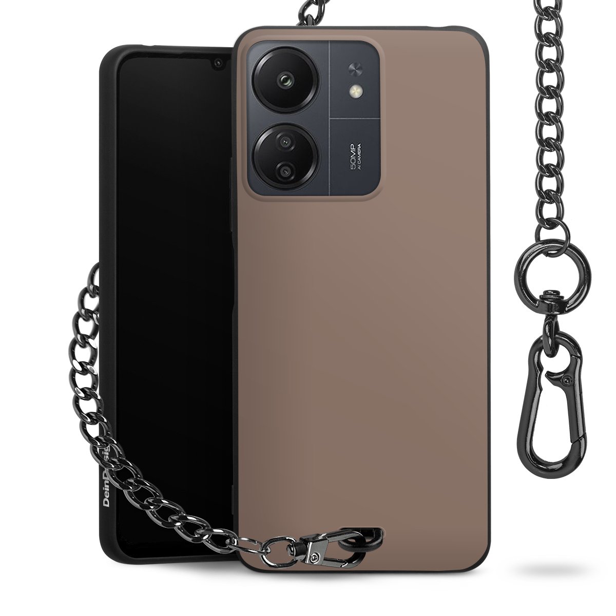 - Mattschwarze Handyhülle mit Metallkette