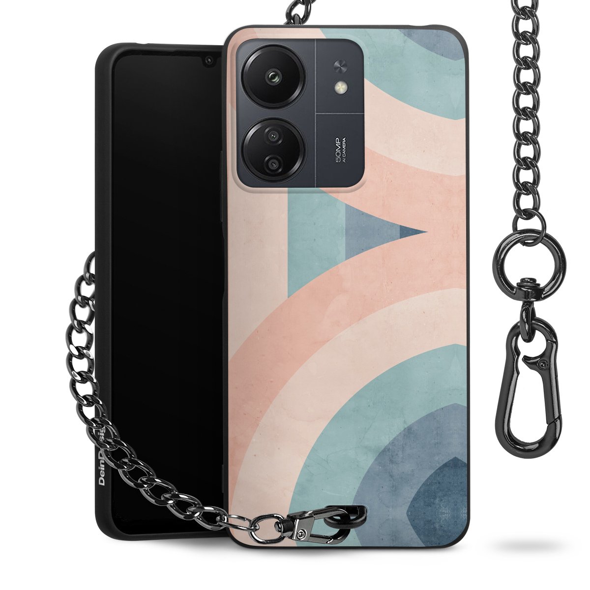Die mattschwarze Silikon-Handyhülle besteht aus robustem TPU (thermoplastisches Polyurethan). Sie ist flexibel und schützt Dein Smartphone vor Stößen und Kratzern. Die Kette sowie der Karabinerhaken sind aus Metall in Gunmetal-Optik gefertigt. Für dieses Produkt kommen ausschließlich TÜV-geprüfte Materialien zum Einsatz.