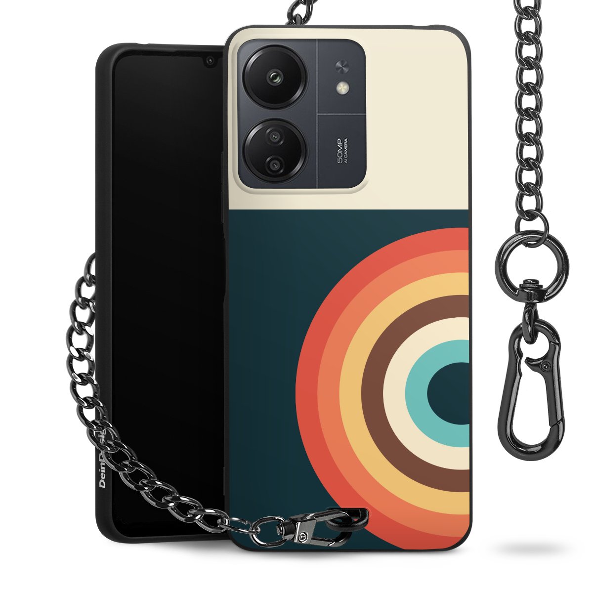 - Mattschwarze Handyhülle mit Metallkette