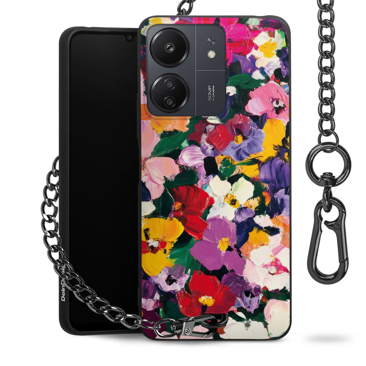 • Mattschwarze Handyhülle mit Metallkette