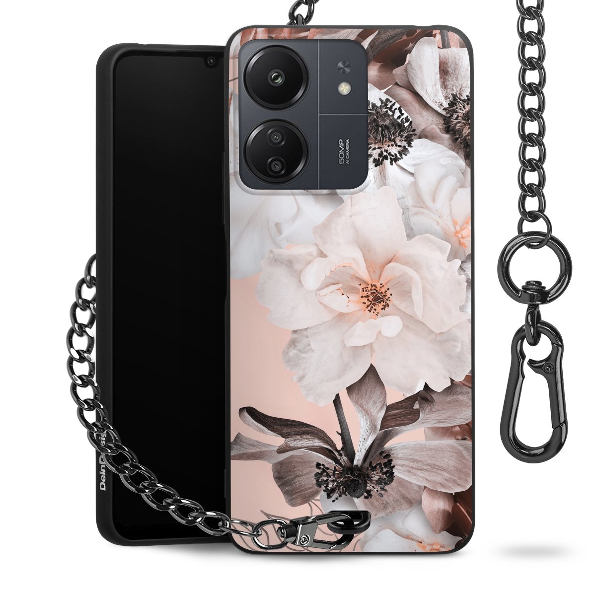 Die mattschwarze Silikon-Handyhülle besteht aus robustem TPU (thermoplastisches Polyurethan). Sie ist flexibel und schützt Dein Smartphone vor Stößen und Kratzern. Die Kette sowie der Karabinerhaken sind aus Metall in Gunmetal-Optik gefertigt. Für dieses Produkt kommen ausschließlich TÜV-geprüfte Materialien zum Einsatz.