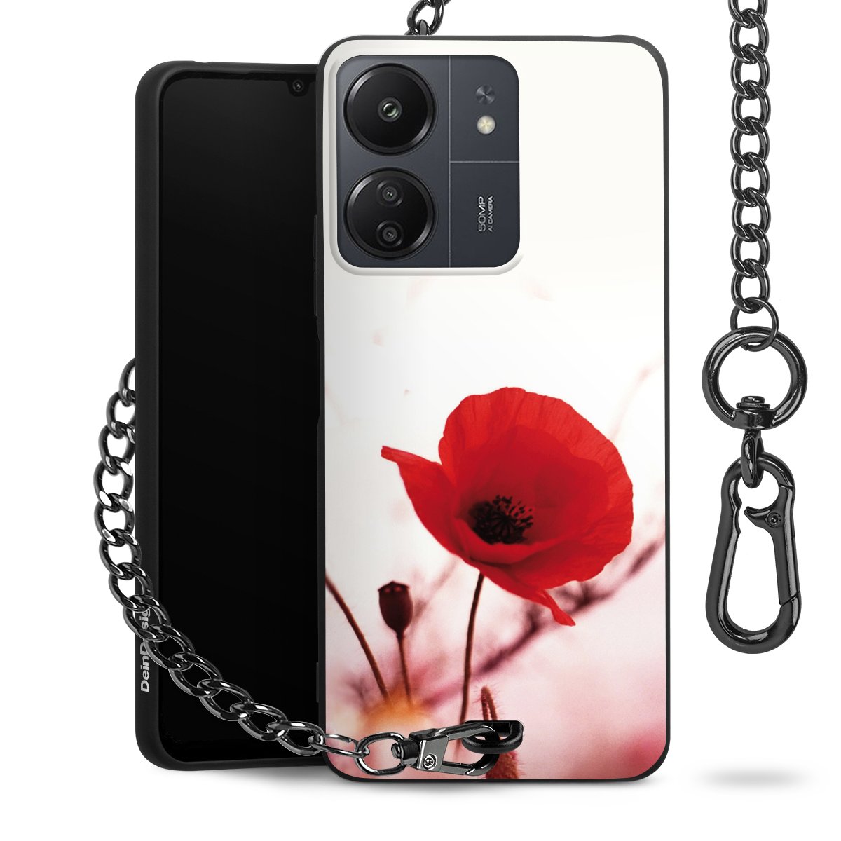 Die mattschwarze Silikon-Handyhülle besteht aus robustem TPU (thermoplastisches Polyurethan). Sie ist flexibel und schützt Dein Smartphone vor Stößen und Kratzern. Die Kette sowie der Karabinerhaken sind aus Metall in Gunmetal-Optik gefertigt. Für dieses Produkt kommen ausschließlich TÜV-geprüfte Materialien zum Einsatz.