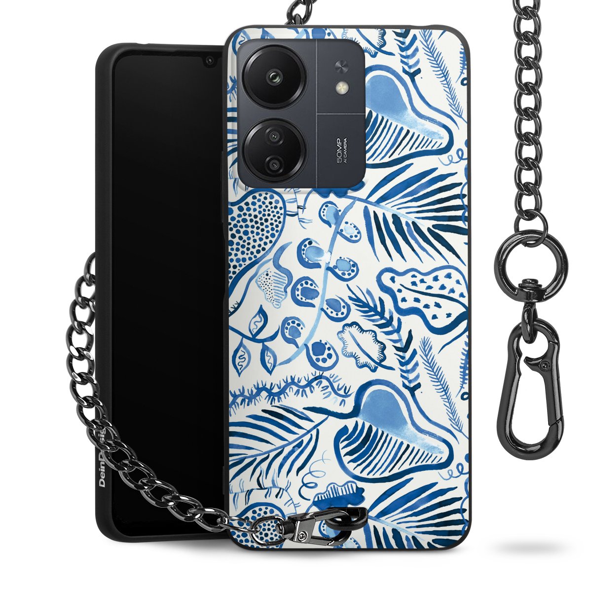 Die mattschwarze Silikon-Handyhülle besteht aus robustem TPU (thermoplastisches Polyurethan). Sie ist flexibel und schützt Dein Smartphone vor Stößen und Kratzern. Die Kette sowie der Karabinerhaken sind aus Metall in Gunmetal-Optik gefertigt. Für dieses Produkt kommen ausschließlich TÜV-geprüfte Materialien zum Einsatz.