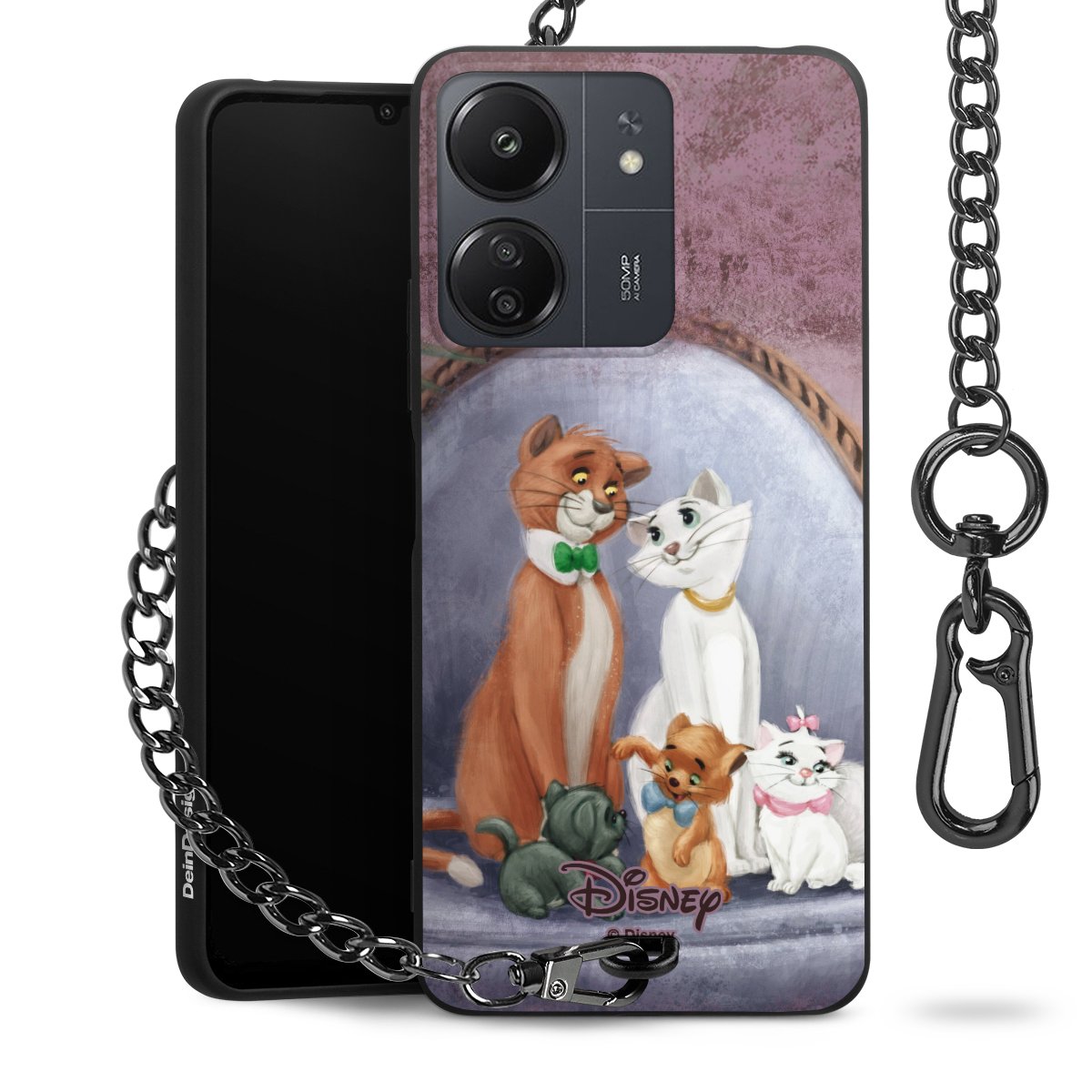 Die mattschwarze Silikon-Handyhülle besteht aus robustem TPU (thermoplastisches Polyurethan). Sie ist flexibel und schützt Dein Smartphone vor Stößen und Kratzern. Die Kette sowie der Karabinerhaken sind aus Metall in Gunmetal-Optik gefertigt. Für dieses Produkt kommen ausschließlich TÜV-geprüfte Materialien zum Einsatz.