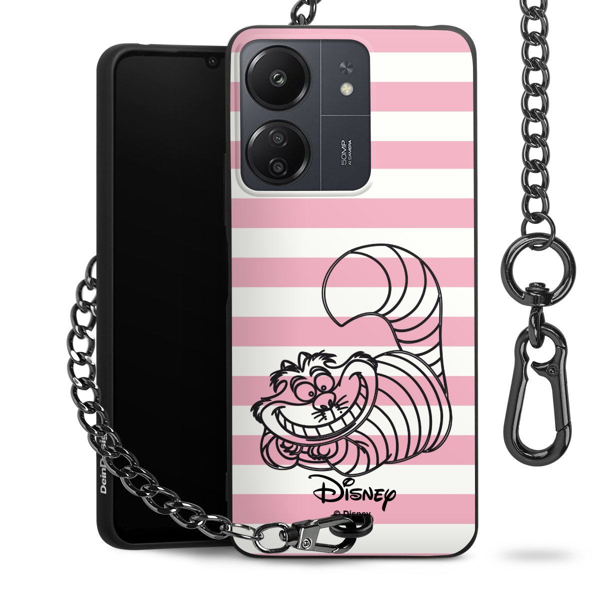 Die mattschwarze Silikon-Handyhülle besteht aus robustem TPU (thermoplastisches Polyurethan). Sie ist flexibel und schützt Dein Smartphone vor Stößen und Kratzern. Die Kette sowie der Karabinerhaken sind aus Metall in Gunmetal-Optik gefertigt. Für dieses Produkt kommen ausschließlich TÜV-geprüfte Materialien zum Einsatz.