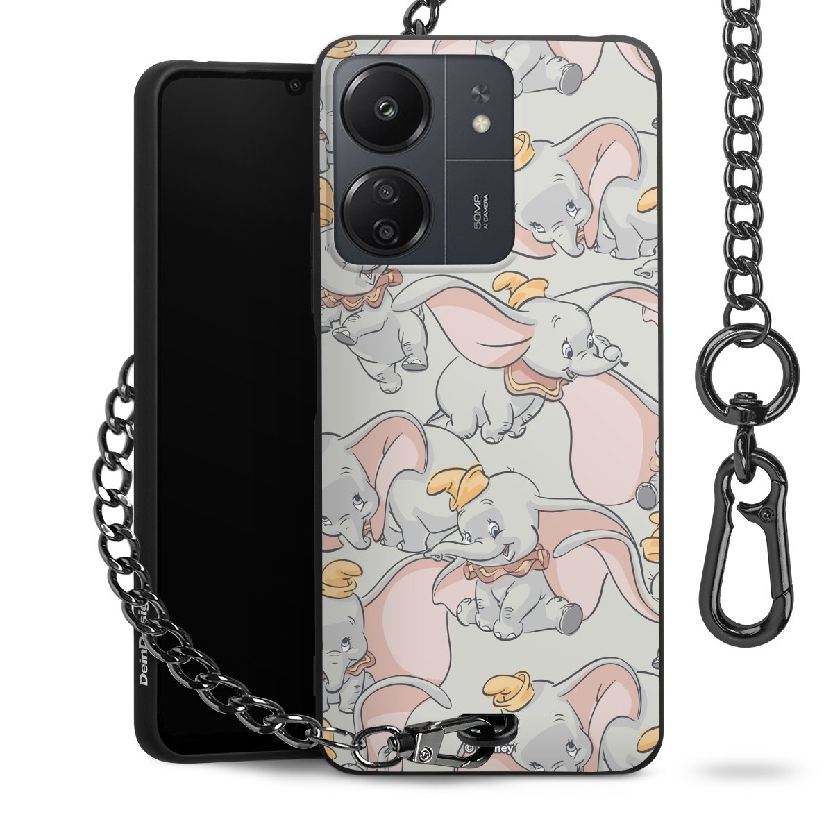 Die Handyhülle verfügt über eine mittig am unteren Rand platzierte Öse, an der die Metallkette stabil befestigt ist. Bestelle die Hülle einfach für Dein Smartphone-Modell, dann passt sie wie angegossen und Du brauchst sie bloß einmal anzudrücken. Handy in die Tasche, Karabiner an den Hosenbund – schon kann die Party starten.