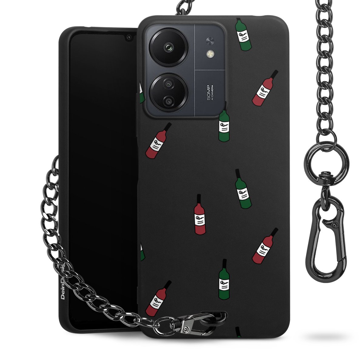 Die mattschwarze Silikon-Handyhülle besteht aus robustem TPU (thermoplastisches Polyurethan). Sie ist flexibel und schützt Dein Smartphone vor Stößen und Kratzern. Die Kette sowie der Karabinerhaken sind aus Metall in Gunmetal-Optik gefertigt. Für dieses Produkt kommen ausschließlich TÜV-geprüfte Materialien zum Einsatz.