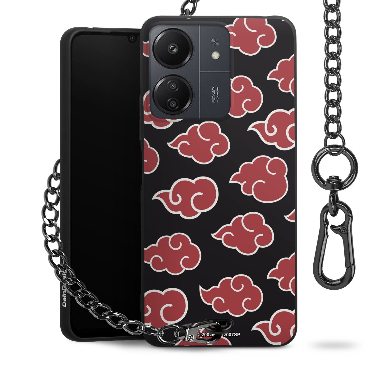 Die mattschwarze Silikon-Handyhülle besteht aus robustem TPU (thermoplastisches Polyurethan). Sie ist flexibel und schützt Dein Smartphone vor Stößen und Kratzern. Die Kette sowie der Karabinerhaken sind aus Metall in Gunmetal-Optik gefertigt. Für dieses Produkt kommen ausschließlich TÜV-geprüfte Materialien zum Einsatz.