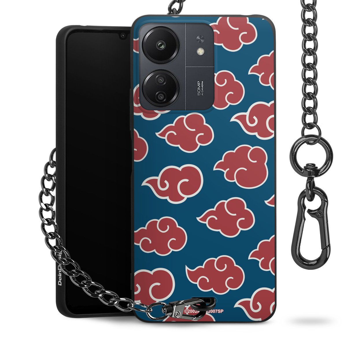 Die mattschwarze Silikon-Handyhülle besteht aus robustem TPU (thermoplastisches Polyurethan). Sie ist flexibel und schützt Dein Smartphone vor Stößen und Kratzern. Die Kette sowie der Karabinerhaken sind aus Metall in Gunmetal-Optik gefertigt. Für dieses Produkt kommen ausschließlich TÜV-geprüfte Materialien zum Einsatz.