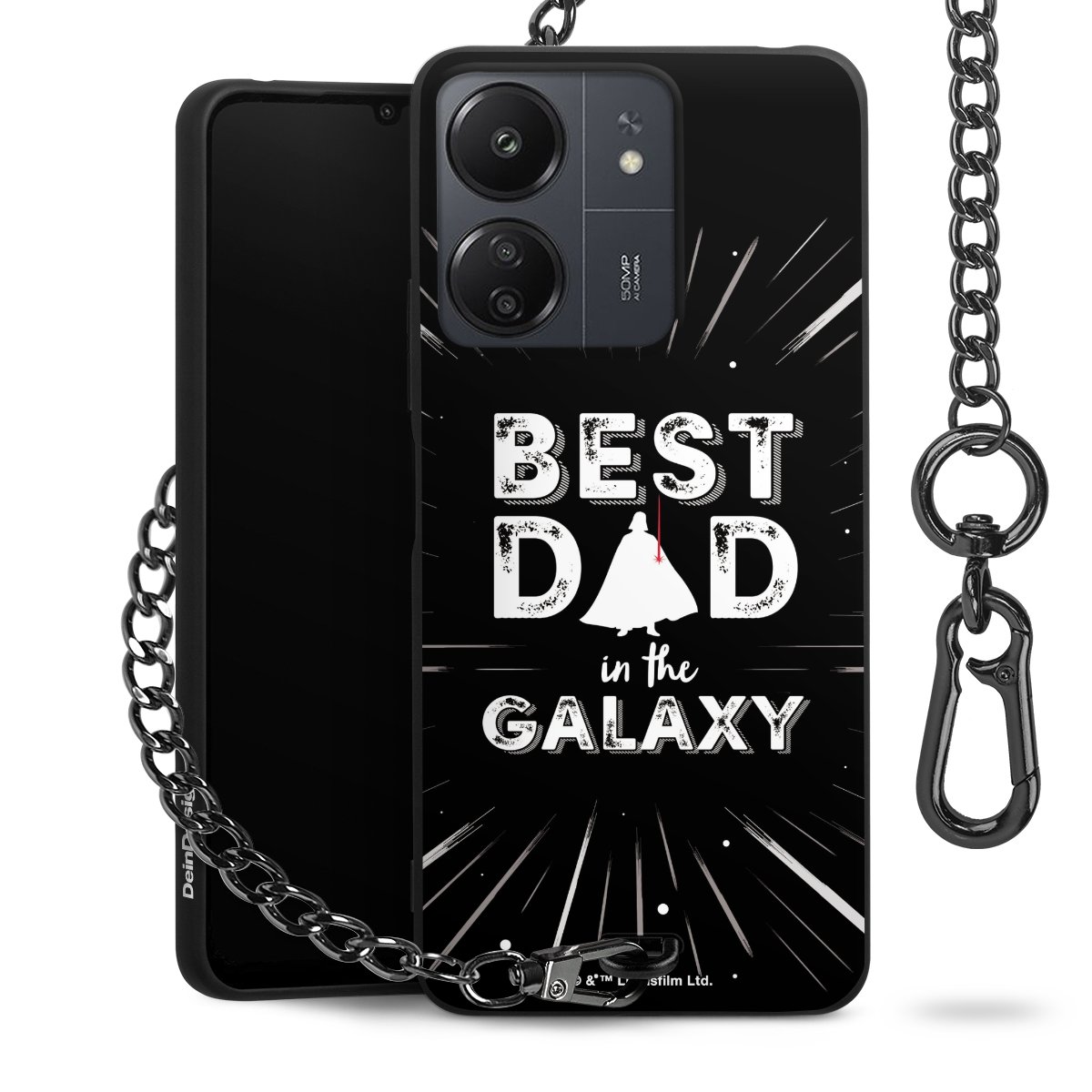 Die mattschwarze Silikon-Handyhülle besteht aus robustem TPU (thermoplastisches Polyurethan). Sie ist flexibel und schützt Dein Smartphone vor Stößen und Kratzern. Die Kette sowie der Karabinerhaken sind aus Metall in Gunmetal-Optik gefertigt. Für dieses Produkt kommen ausschließlich TÜV-geprüfte Materialien zum Einsatz.