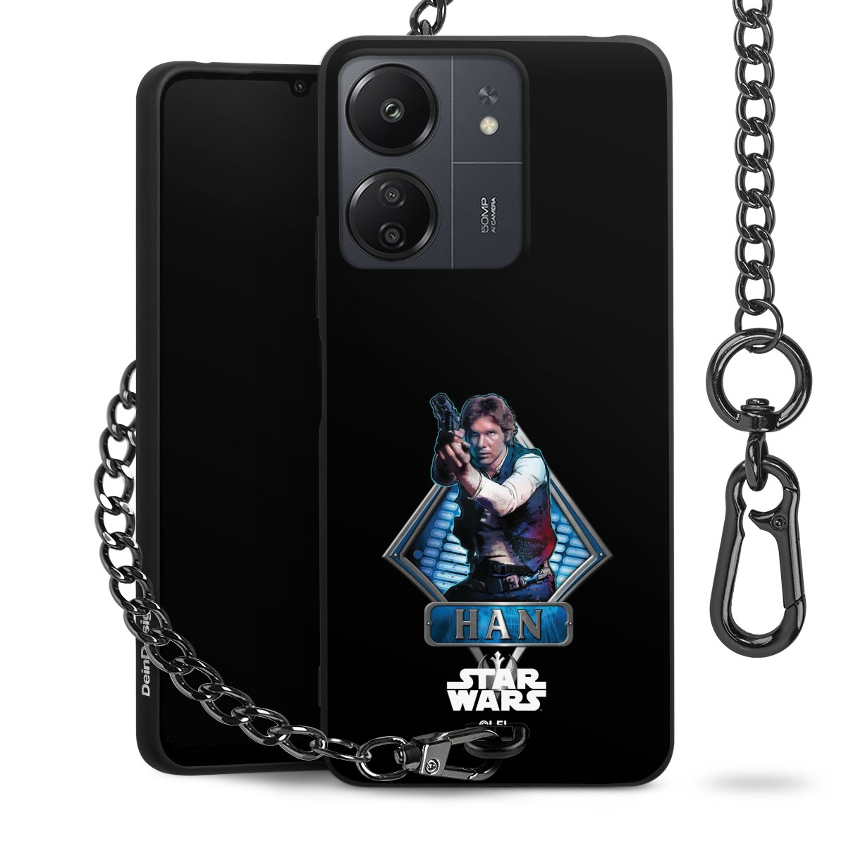 Darth Vader, C3PO, R2D2 und Meister Yoda findest Du in unserem Star Wars Shop auf DeinDesign. Natürlich gibt es auch Star Wars Handyhüllen mit den legendären Charakteren Luke Skywalker, Prinzessin Leia und Han Solo, den Helden der ersten Saga. Wer jedoch die Hauptfiguren der neuen Star Wars Filme ins Herz geschlossen hat, kann auch Finn und Rey mit ihren mächtigen Waffen auf der Rückseite seines Smartphones haben. Die vielseitigen Schutzhüllen in verschiedenen Ausführungen sind das perfekte Geschenk für alle Star Wars Fans, die ihrem Smartphone eine individuelle Note verleihen wollen.