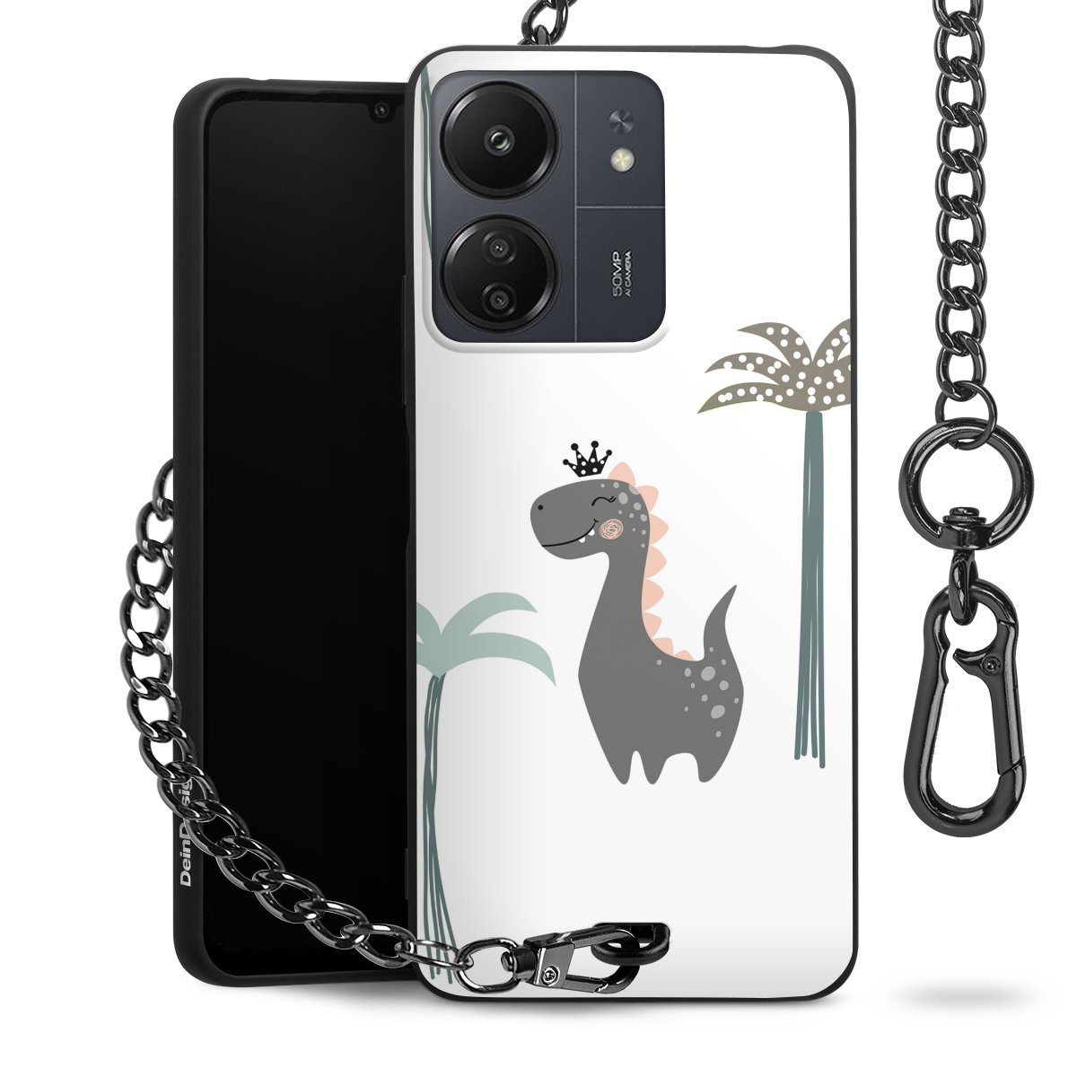 Die mattschwarze Silikon-Handyhülle besteht aus robustem TPU (thermoplastisches Polyurethan). Sie ist flexibel und schützt Dein Smartphone vor Stößen und Kratzern. Die Kette sowie der Karabinerhaken sind aus Metall in Gunmetal-Optik gefertigt. Für dieses Produkt kommen ausschließlich TÜV-geprüfte Materialien zum Einsatz.