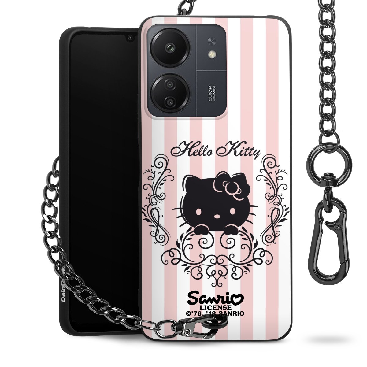Die mattschwarze Silikon-Handyhülle besteht aus robustem TPU (thermoplastisches Polyurethan). Sie ist flexibel und schützt Dein Smartphone vor Stößen und Kratzern. Die Kette sowie der Karabinerhaken sind aus Metall in Gunmetal-Optik gefertigt. Für dieses Produkt kommen ausschließlich TÜV-geprüfte Materialien zum Einsatz.