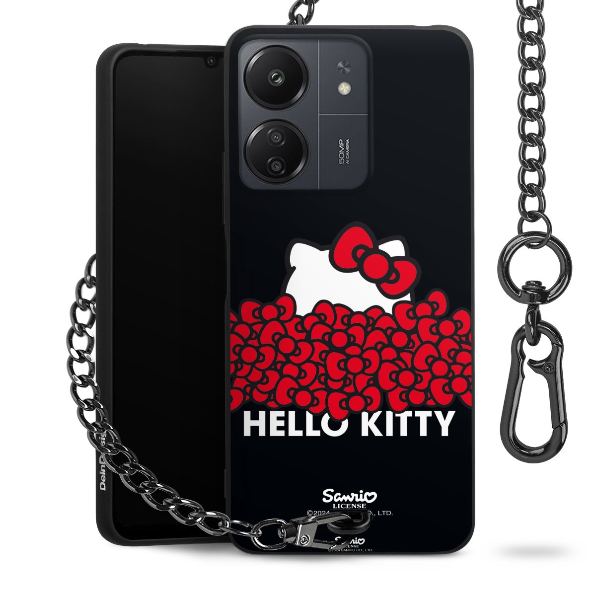 Die mattschwarze Silikon-Handyhülle besteht aus robustem TPU (thermoplastisches Polyurethan). Sie ist flexibel und schützt Dein Smartphone vor Stößen und Kratzern. Die Kette sowie der Karabinerhaken sind aus Metall in Gunmetal-Optik gefertigt. Für dieses Produkt kommen ausschließlich TÜV-geprüfte Materialien zum Einsatz.