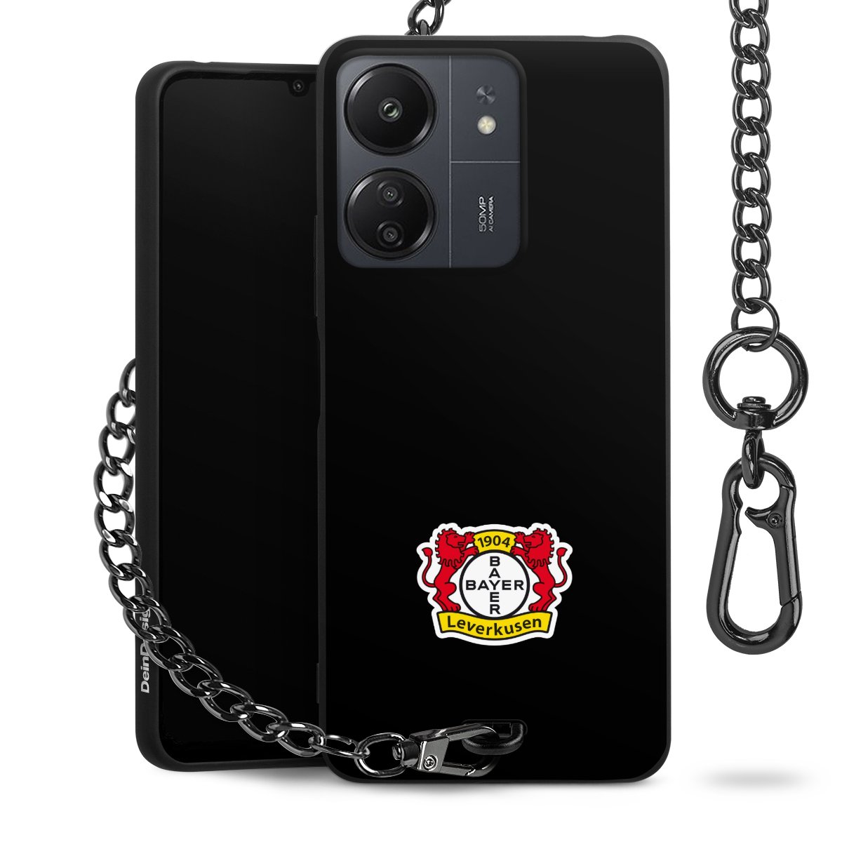 Die mattschwarze Silikon-Handyhülle besteht aus robustem TPU (thermoplastisches Polyurethan). Sie ist flexibel und schützt Dein Smartphone vor Stößen und Kratzern. Die Kette sowie der Karabinerhaken sind aus Metall in Gunmetal-Optik gefertigt. Für dieses Produkt kommen ausschließlich TÜV-geprüfte Materialien zum Einsatz.