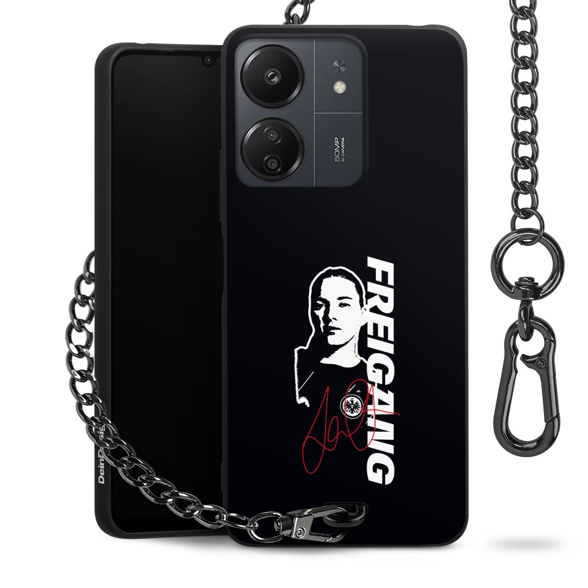 Die mattschwarze Silikon-Handyhülle besteht aus robustem TPU (thermoplastisches Polyurethan). Sie ist flexibel und schützt Dein Smartphone vor Stößen und Kratzern. Die Kette sowie der Karabinerhaken sind aus Metall in Gunmetal-Optik gefertigt. Für dieses Produkt kommen ausschließlich TÜV-geprüfte Materialien zum Einsatz.