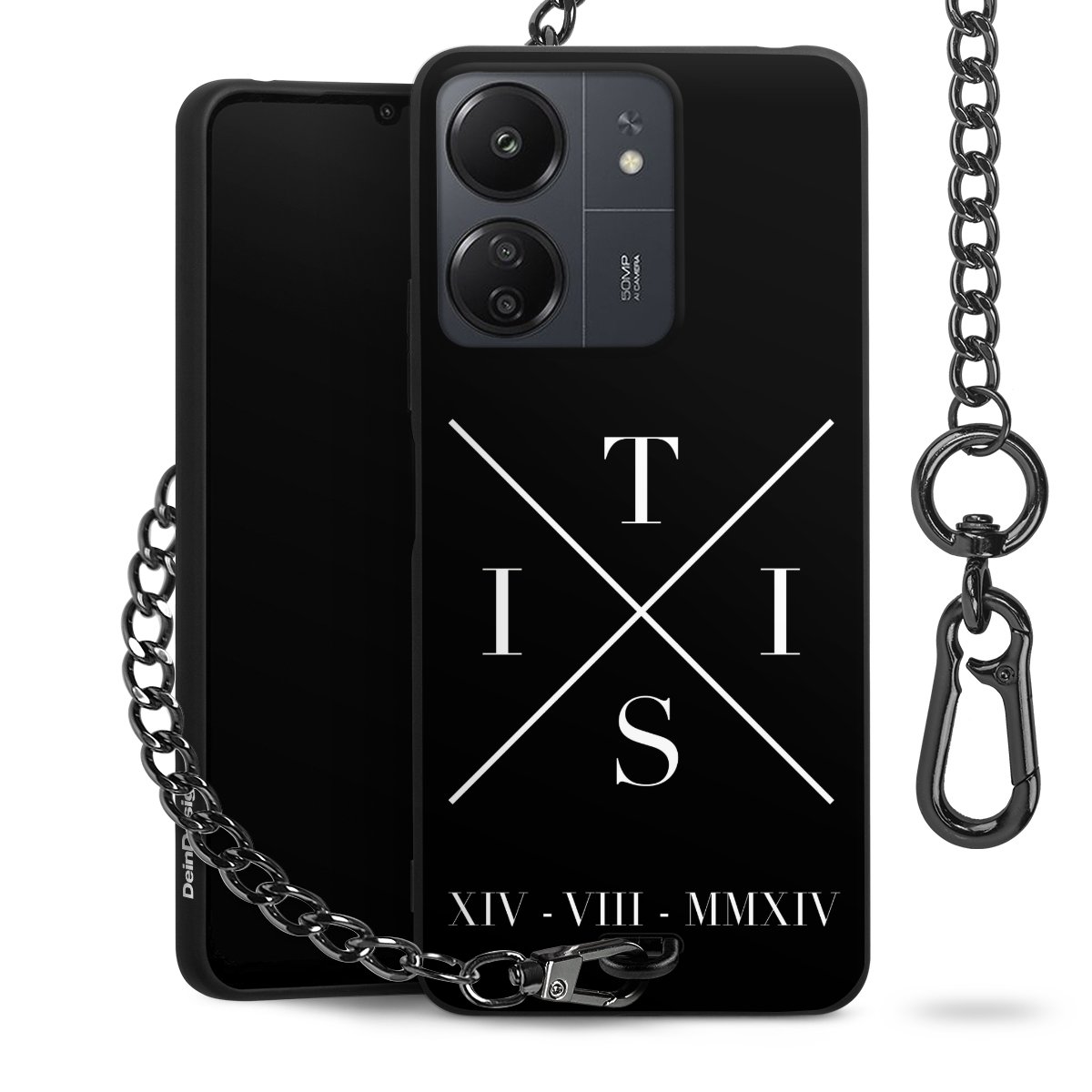 Die mattschwarze Silikon-Handyhülle besteht aus robustem TPU (thermoplastisches Polyurethan). Sie ist flexibel und schützt Dein Smartphone vor Stößen und Kratzern. Die Kette sowie der Karabinerhaken sind aus Metall in Gunmetal-Optik gefertigt. Für dieses Produkt kommen ausschließlich TÜV-geprüfte Materialien zum Einsatz.