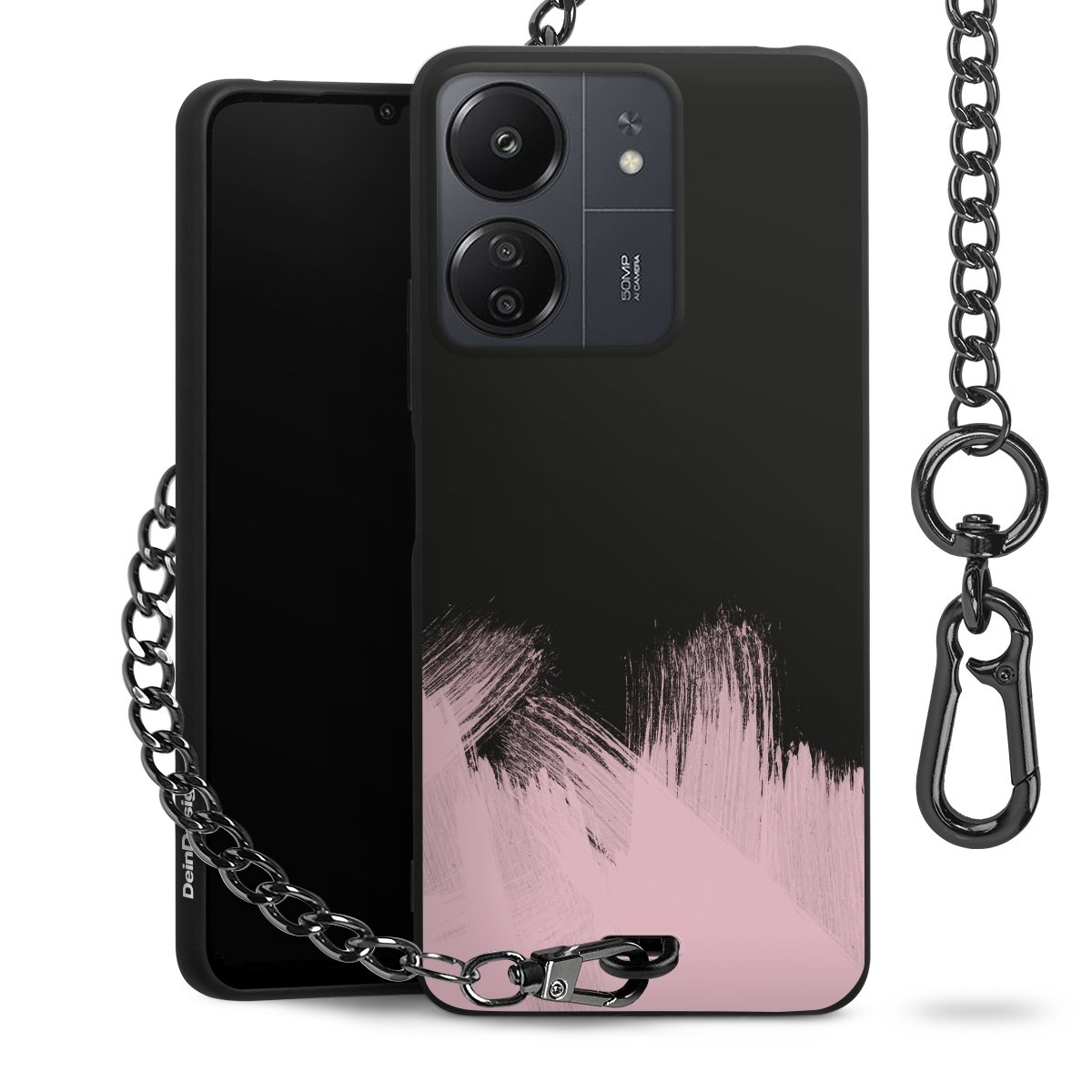 • Mattschwarze Handyhülle mit Metallkette
