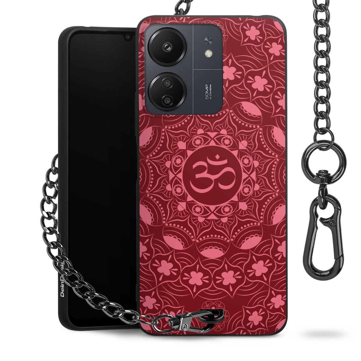 Die mattschwarze Silikon-Handyhülle besteht aus robustem TPU (thermoplastisches Polyurethan). Sie ist flexibel und schützt Dein Smartphone vor Stößen und Kratzern. Die Kette sowie der Karabinerhaken sind aus Metall in Gunmetal-Optik gefertigt. Für dieses Produkt kommen ausschließlich TÜV-geprüfte Materialien zum Einsatz.