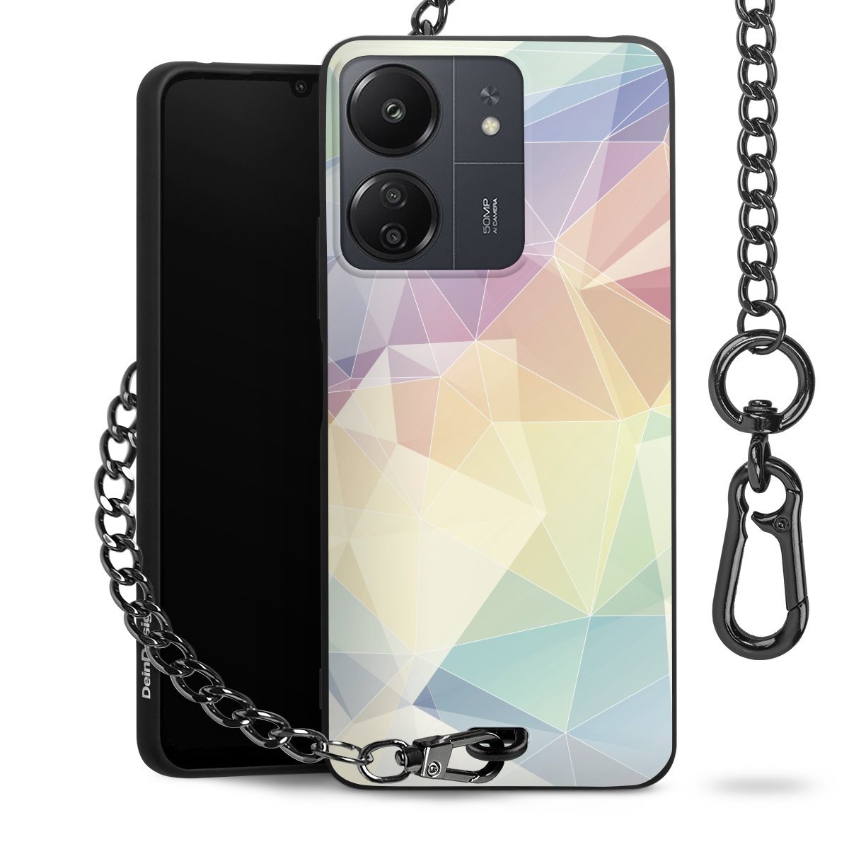 Die mattschwarze Silikon-Handyhülle besteht aus robustem TPU (thermoplastisches Polyurethan). Sie ist flexibel und schützt Dein Smartphone vor Stößen und Kratzern. Die Kette sowie der Karabinerhaken sind aus Metall in Gunmetal-Optik gefertigt. Für dieses Produkt kommen ausschließlich TÜV-geprüfte Materialien zum Einsatz.