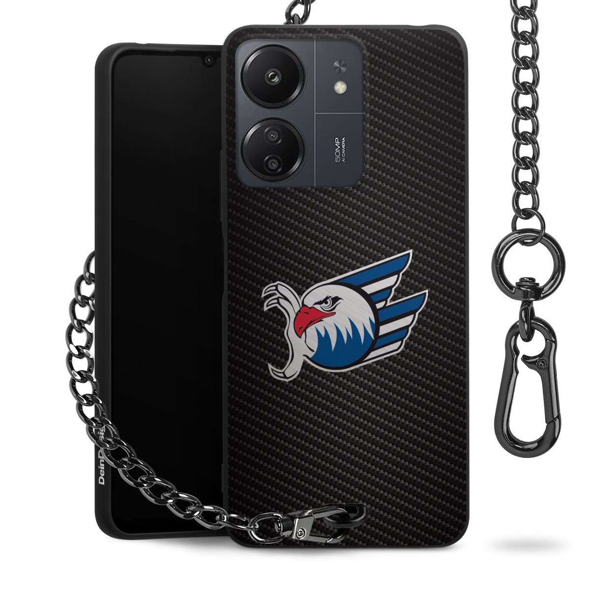 Die mattschwarze Silikon-Handyhülle besteht aus robustem TPU (thermoplastisches Polyurethan). Sie ist flexibel und schützt Dein Smartphone vor Stößen und Kratzern. Die Kette sowie der Karabinerhaken sind aus Metall in Gunmetal-Optik gefertigt. Für dieses Produkt kommen ausschließlich TÜV-geprüfte Materialien zum Einsatz.