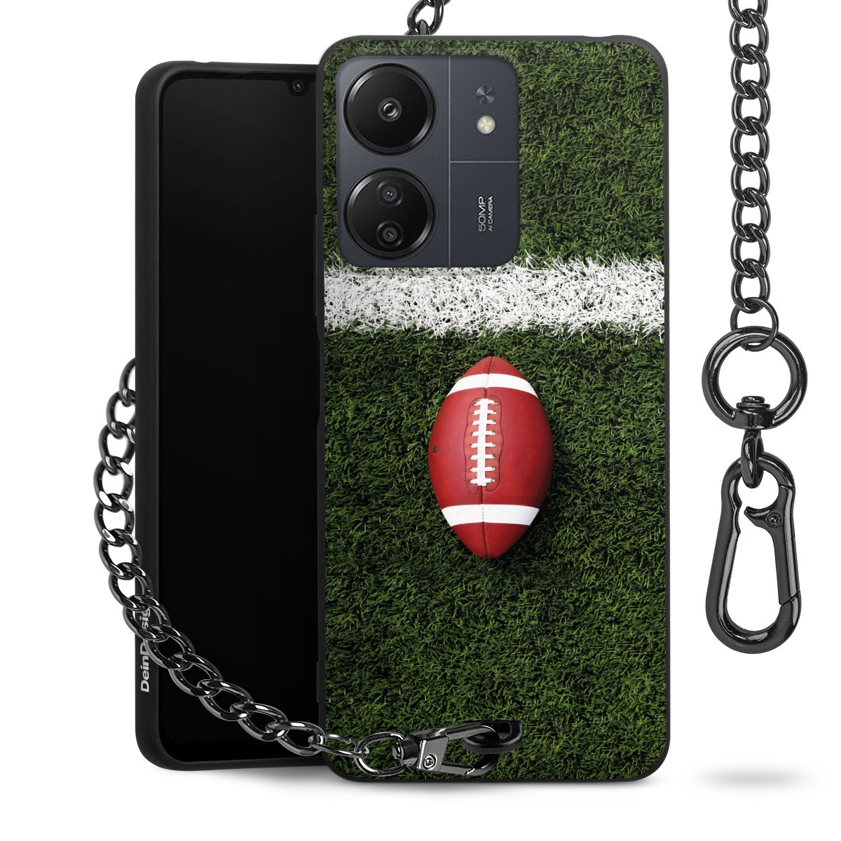 Die mattschwarze Silikon-Handyhülle besteht aus robustem TPU (thermoplastisches Polyurethan). Sie ist flexibel und schützt Dein Smartphone vor Stößen und Kratzern. Die Kette sowie der Karabinerhaken sind aus Metall in Gunmetal-Optik gefertigt. Für dieses Produkt kommen ausschließlich TÜV-geprüfte Materialien zum Einsatz.