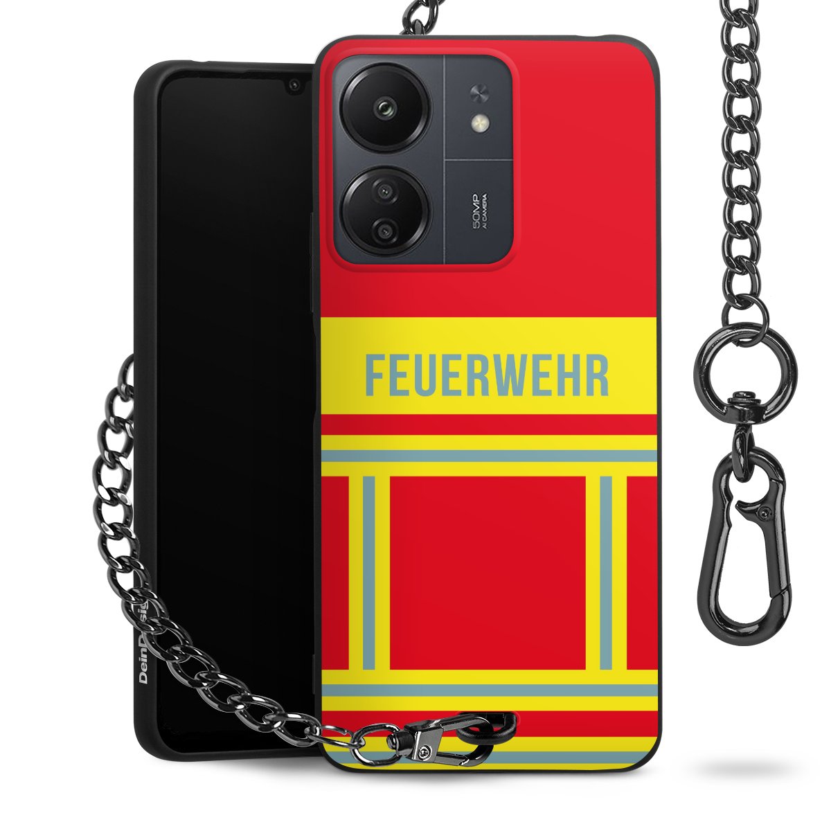 Die mattschwarze Silikon-Handyhülle besteht aus robustem TPU (thermoplastisches Polyurethan). Sie ist flexibel und schützt Dein Smartphone vor Stößen und Kratzern. Die Kette sowie der Karabinerhaken sind aus Metall in Gunmetal-Optik gefertigt. Für dieses Produkt kommen ausschließlich TÜV-geprüfte Materialien zum Einsatz.