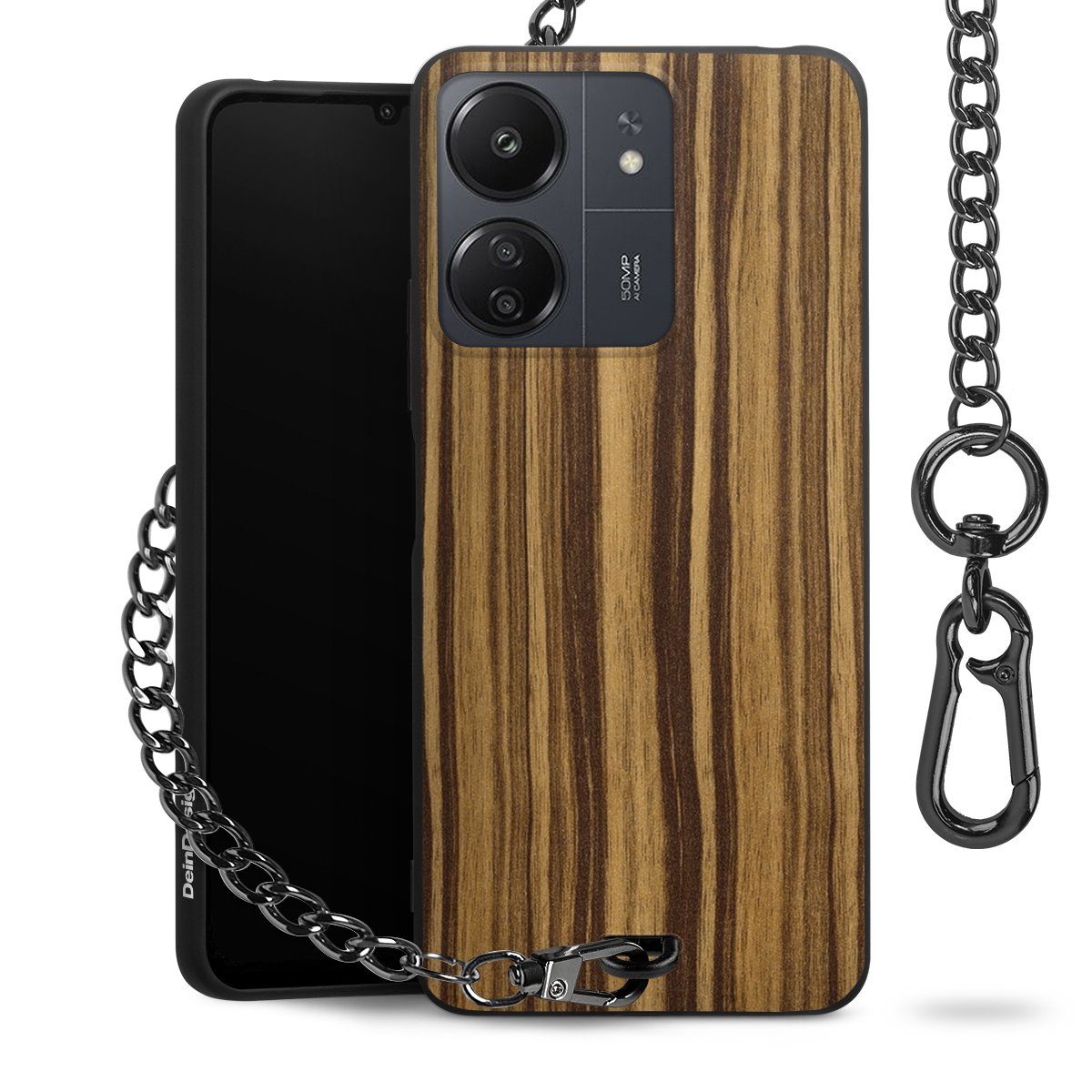 - Mattschwarze Handyhülle mit Metallkette